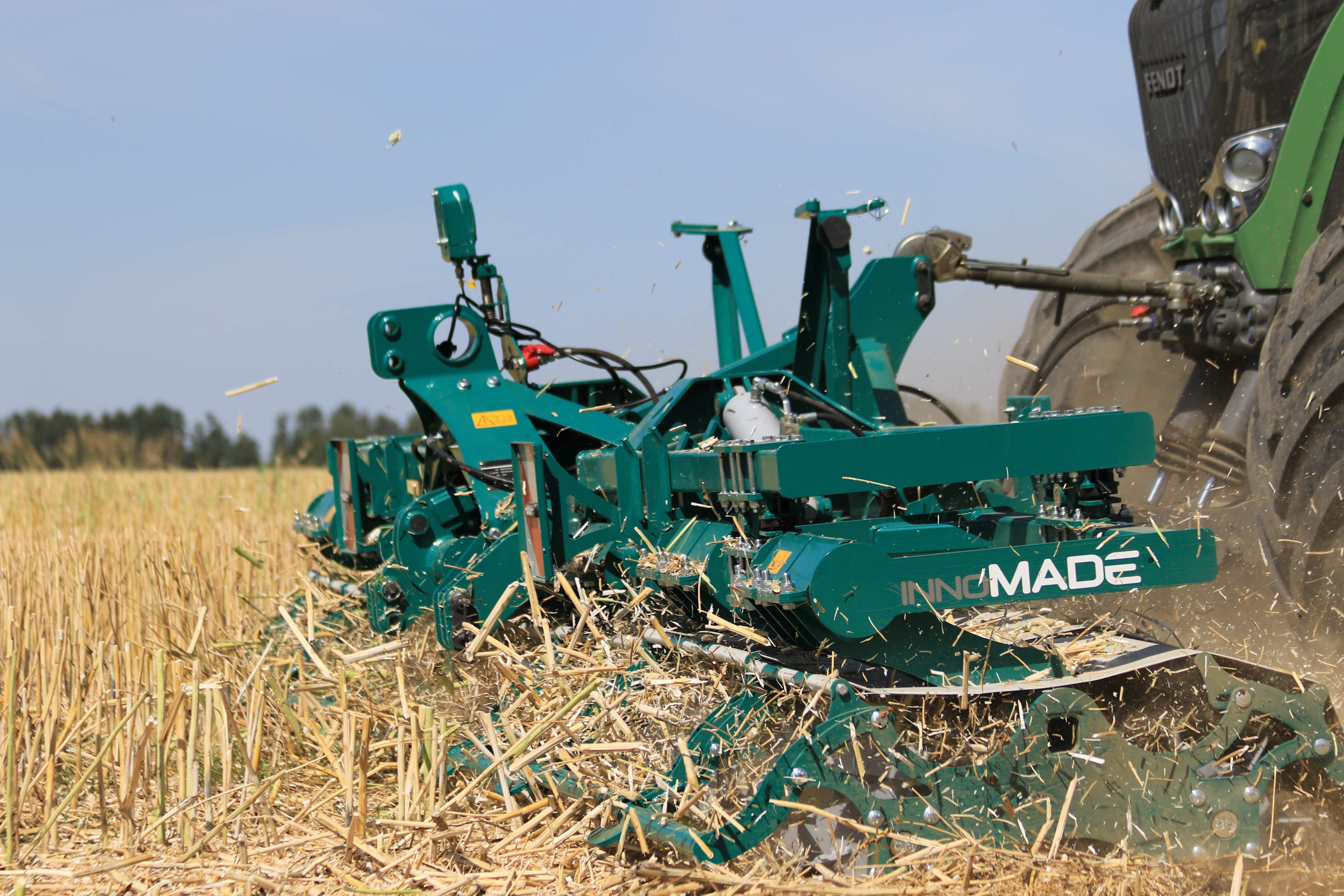Die innoMADE Messerwalzen sind eine Entwicklung der im Erzgebirge ansässigen Eidam Landtechnik GmbH. Sie zeichnen sich durch extreme Laufruhe sowie Leichtzügigkeit aus und kombinieren gleichmäßig hohe Schnittwirkung mit optimaler Konturanpassung über die gesamte Arbeitsbreite. Die Messerwalzen schneiden und brechen Stoppel sowie Zwischenfrüchte bei Fahrgeschwindigkeiten bis 25 km/h und erzielen damit hohe Flächenleistungen bei niedrigem Verbrauch. Das macht sie zu ressourcenschonenden und ebenso effizienten Werkzeugen für die ganzjährige, ultraleichte Bodenbearbeitung. Im Maisstoppelsturz sind sie außerdem ein sehr zuverlässiges, wirkungsvolles Mittel, den Lebensraum der Maiszünslerlarven einzudämmen. Durch leichtes Einarbeiten des zerkleinerten Materials in die oberste Bodenschicht wird außerdem die Rotte beschleunigt.