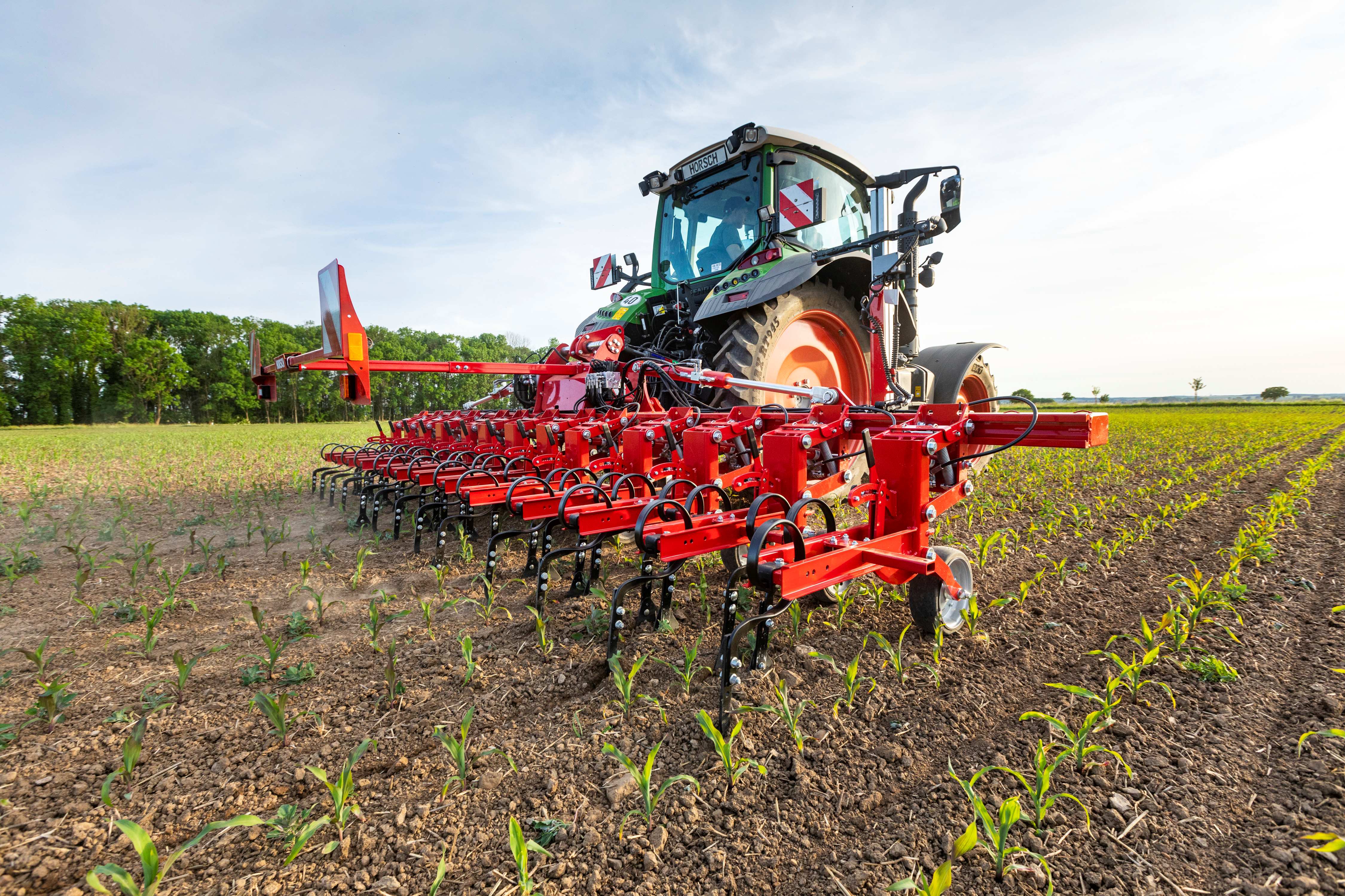 Transformer VF - präzise und robuste Hacktechnik in 6, 9, 12 und 18 m Arbeitsbreite. Durch die kruze Bauweise mit dem vollintegrierten Seitenverschieberahmen wird die Maschine kompakt und präzise zugleich. Die kameragesteuerte Seitenverschiebeeinheit mit 450 mm Verschiebeweg bietet umfassende Möglichkeiten für die Nutzung in verschiedenen Kulturen und Bedingungen. Zwei verschiedene Parallelogram-Bauweisen sorgen für eine Nutzung in den gängigen Reihenabständen von 15 bis 80 cm. Die Arbeitstiefe lässt sich simpel und ohne Werkzeug stufenweise einstellen. Zusatzwerkzeuge wie Kulturschutzscheiben/-bleche, Fingerhacken, Häufelbleche und weitere Optionen sind natürlich auch erhältlich. Mit RowLift (Section Control) werden Überlappungen und Bearbeitungslücken am Vorgewende auf ein Minimum reduziert. Doppelwirkende Hubzylinder für die Parallelogramme sind ebenso erhältlich, was einen höheren Schardruck und die Einstellung dessen, während der Fahrt ermöglicht. Weitere Zusatzoptionen wie Hartmetallbeschichtungen der Schare oder das Ausbringen von Dünger und Untersaaten sind ebenso möglich.